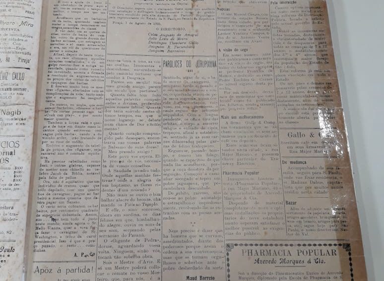 O jornal O Piraju, dirigido por Nestor do Val, que circulava semanalmente no município no começo do século passado, tinha somente quatro páginas e era composto de reprodução de textos literários e, de resto, notinhas: aniversários, casamentos/enlaces/bodas, chegadas e partidas, falecimentos, nascimentos, programação do cinema, balancetes, comunicados oficiais e um ou outro acontecimento, como alguma “kermesse” por exemplo, seguindo a grafia da época.
