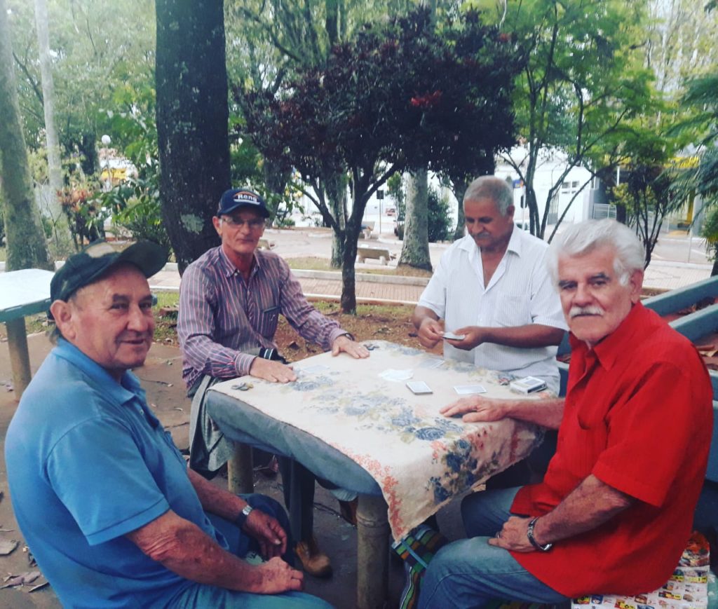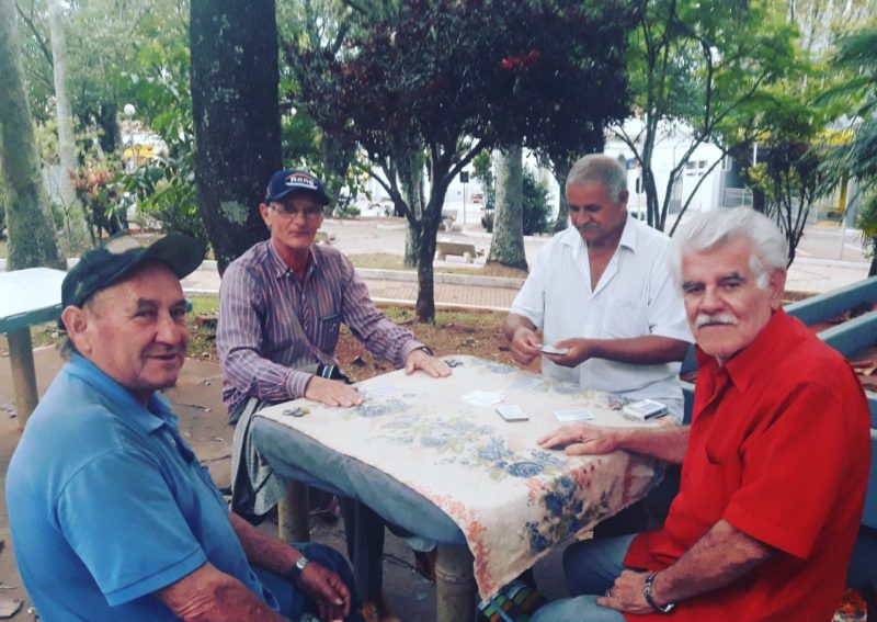 Os amigos Antônio Carlos Rodrigues, João Camargo dos Santos, Sidney Barreto e Paulo Souza aproveitaram a tarde bonita pra botar o papo em dia e para jogar boas partidas de truco e escopa no centro de Piraju.