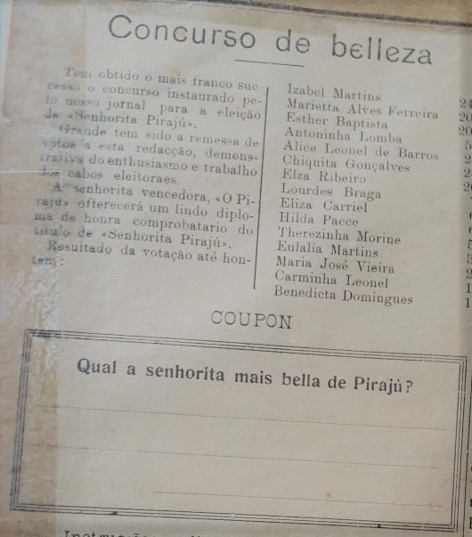 Ver mais...Em 1929, jornal “O Piraju” promove concurso de beleza