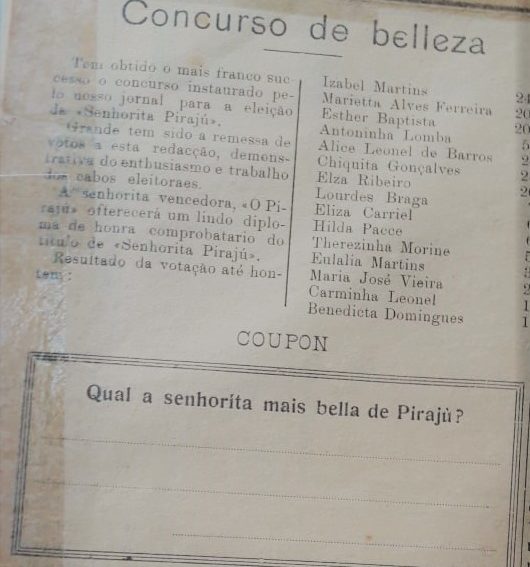 Não queiram, encantadoras pirajuenses, ficarem todas feias, e principalmente agora, quando estamos empenhados num concurso que há de coroar a mais bela dentre vós.
