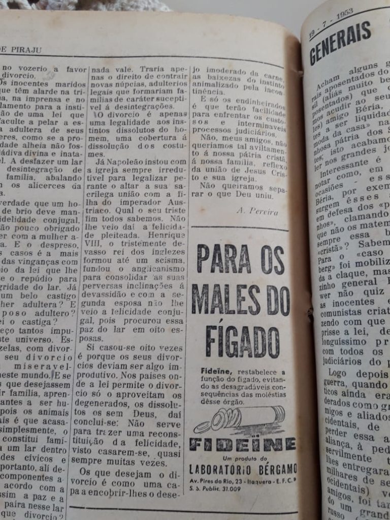 Talvez até ironicamente, logo abaixo do artigo de Pereira foi posto um anúncio do medicamento “Fideïne”, indicado para males do fígado. Tantas décadas depois, descobrir se a equipe do “Comércio” de fato usou da propaganda para debochar das barbaridades proferidas por Pereira é missão impossível.