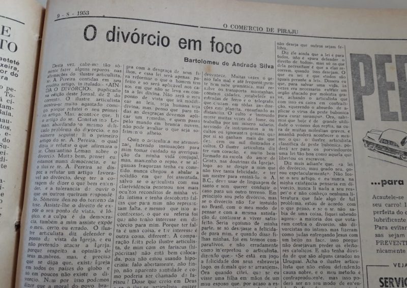 Nem todo pirajuense concordava com Pereira, entretanto. Constantino Leman, Bartolomeu de Andrade Silva e Valdir Bittencourt Carvalho foram colunistas que fizeram questão de defender o divórcio nas páginas do jornal “O Comércio de Piraju”.